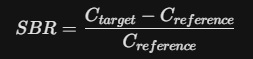 The SBR is essentially a simplified version of the Binding Potential (BPND) used in PET imaging. In research-grade kinetic modeling, we assume a "Simplified Reference Tissue Model" (SRTM).