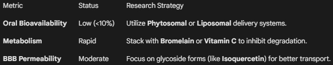 In advanced stack design, Quercetin is utilized as a "structural maintenance" nootropic rather than an acute stimulant.