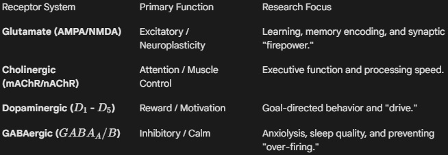 Research into cognitive enhancement is essentially a study of Receptor Kinetics—how we can precisely "tune" these proteins to optimize mental output.