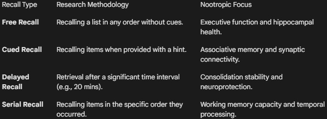 Research Note: When testing for recall, researchers must control for interference. Retroactive interference (new info blocking old) and proactive interference (old info blocking new) can both skew results. Nootropics like Bacopa Monnieri are specifically researched for their ability to reduce this interference, thereby clarifying the "retrieval path."