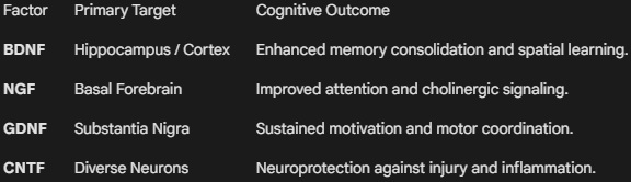 - BDNF (Brain-Derived Neurotrophic Factor): Often called "Miracle-Gro for the brain," BDNF is the most researched trophic factor. It is essential for Long-Term Potentiation (LTP). Nootropics like 7,8-Dihydroxyflavone or lifestyle interventions like high-intensity exercise are studied specifically for their ability to upregulate BDNF levels.