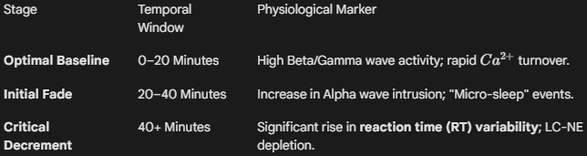 - The Resource Depletion Model: This theory posits that vigilance requires a constant "draw" on metabolic resources. Nootropics that enhance Cerebral Glucose Utilization or Mitochondrial Efficiency (like ALCAR or Creatine) are studied for their ability to provide the ATP necessary to "power through" the 30-minute mark where the decrement typically begins.